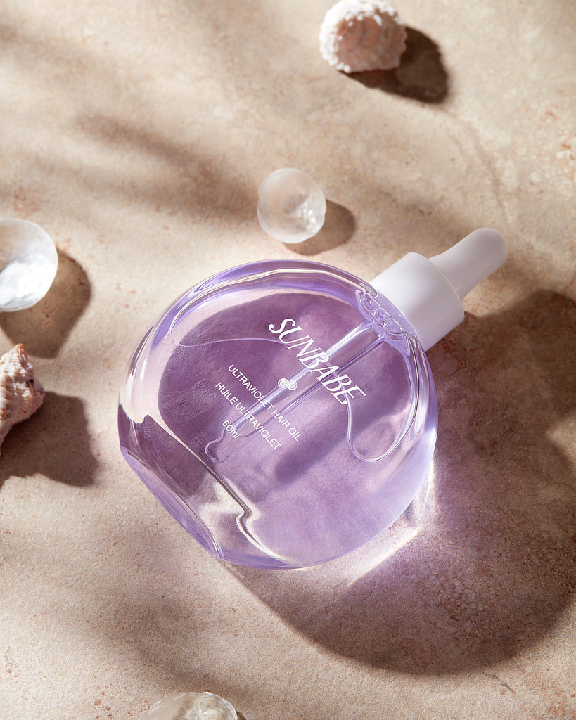 Our oil excludes amber-coloured oils in the formula, which means hair remains free from the potential of staining and browning. Some amber-coloured oils can stain hair with use over time, causing a "browning" effect. The clarity of our oil is beneficial for both blondes and brunettes (especially ash) looking to preserve their hair colour and tone, whether natural or dyed. Ultraviolet also includes a hint of violet pigment, a hue known to enhance and maintain hair colour vibrance.